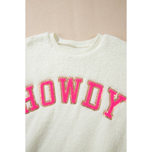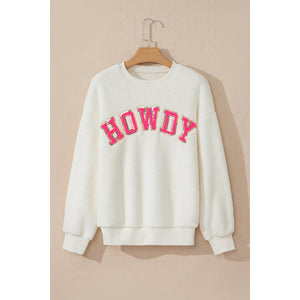 HOWDY Patched Round Neck Sherpa Sweatshirt