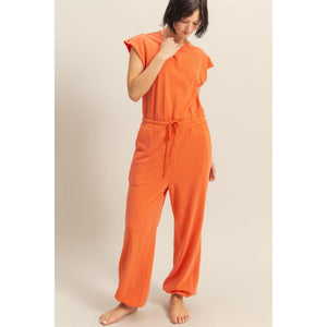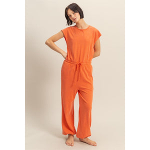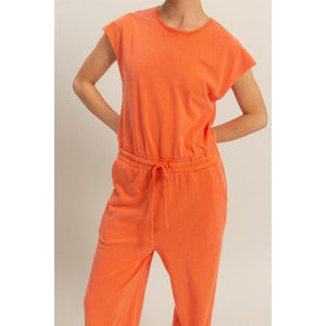HYFVE Back Keyhole Round Neck Cap Sleeve Drawstring Jumpsuit