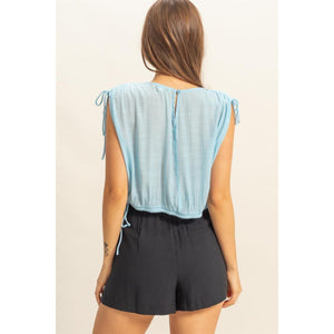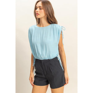HYFVE Bubble Hem Side Tie Detail Round Neck Sleeveless Blouse