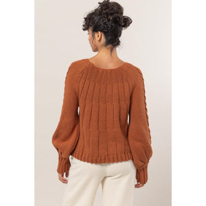Stay cozy and chic in this Cable-Knit Round Neck Raglan Sleeve Sweater. The classic cable-knit design adds texture and sophistication to this timeless piece. The raglan sleeves provide a flattering silhouette and a touch of casual charm. Perfect for pairing with jeans or leggings, this sweater is a versatile staple for your winter wardrobe. Whether you're lounging at home or out and about, this sweater will keep you looking stylish and feeling snug all season long.