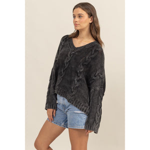 HYFVE Cable Knit V-Neck Dropped Shoulder Oversized Sweater