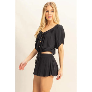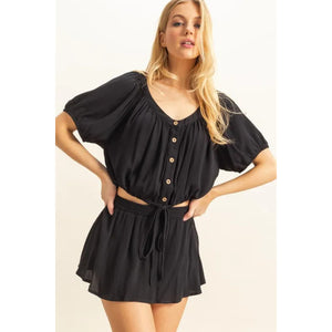HYFVE Drawstring Hem Short Sleeve Top and Skort Set