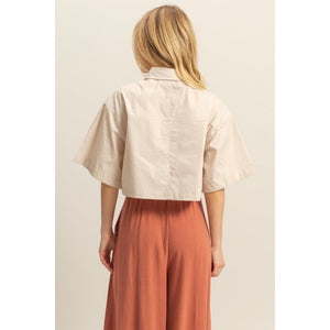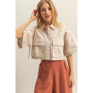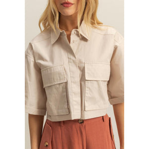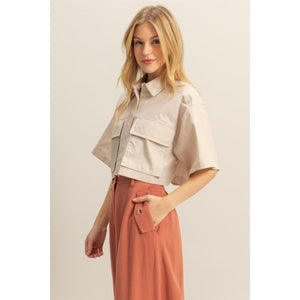 HYFVE Front Pockets Poplin Collared Neck Crop Shirt