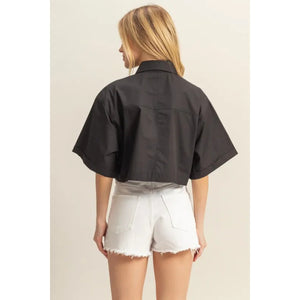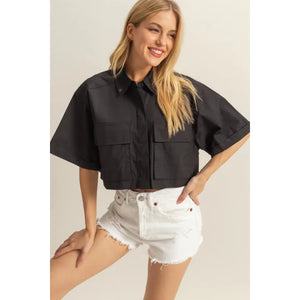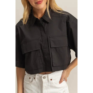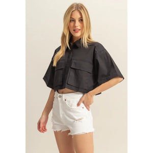 HYFVE Front Pockets Poplin Collared Neck Crop Shirt