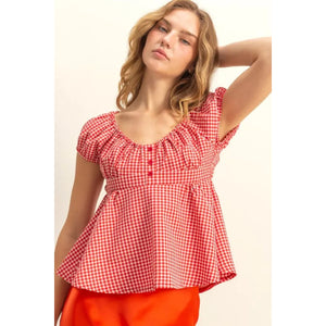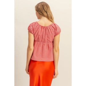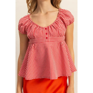 HYFVE Gingham Scoop Neck Cap Sleeve Blouse