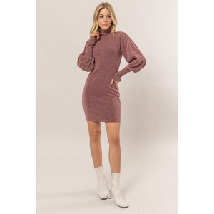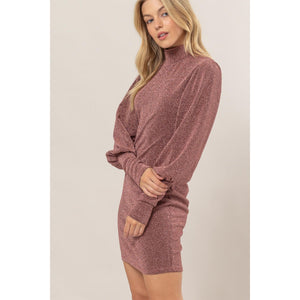 HYFVE Glitter Mock Neck Long Sleeve Mini Dress