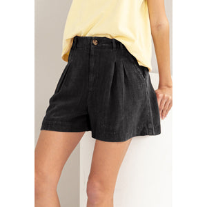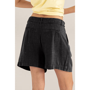 These linen shorts are your daily dose of style. these feature a mineral washed fabric that shapes a flattering high waist with belt loops and relaxed legs for you to enjoy the warm weather in style. soft pleats complete the look.