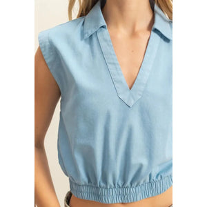 HYFVE Johnny Collar Sleeveless Cropped Blouse