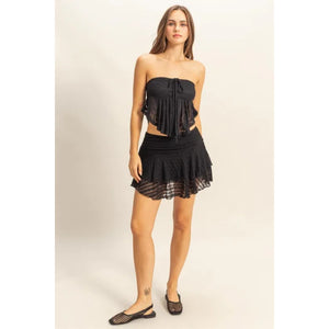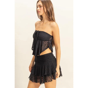 The Lace Bustier Flowy Tube Top is a fashionable and feminine piece featuring a lace bustier design and a flowy silhouette. This tube top combines a delicate lace detailing with a breezy and loose fit for a stylish and flattering look. The bustier style adds a touch of elegance and sophistication, making it a versatile option for dressing up or down. Perfect for a romantic and chic ensemble, the Lace Bustier Flowy Tube Top is a must-have addition to your wardrobe for a trendy and elegant look.