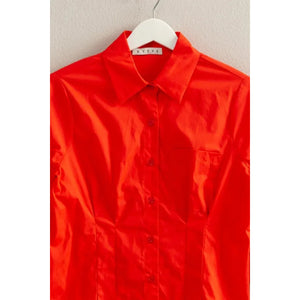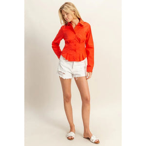 HYFVE Long Sleeve Pleated Waist Poplin Shirt