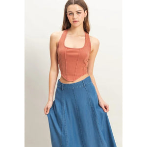 The mineral wash halter neck everyday top is a stylish and versatile addition to your wardrobe. Its unique mineral wash gives it a trendy, slightly worn-in look, perfect for casual or dressy occasions. The halter neck design adds a touch of elegance, making it a fashionable choice for everyday wear.