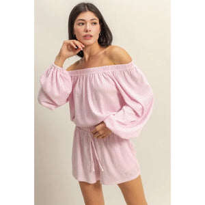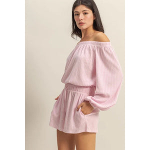 The Off Shoulder Top and Shorts Set is a coordinated outfit featuring an off-the-shoulder top paired with matching shorts for a stylish and cohesive look. This set is perfect for warmer weather and casual outings, offering a trendy and flirty ensemble.