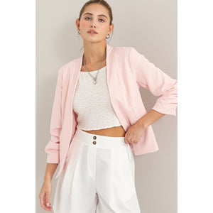 HYFVE Open Front Ruched Sleeve Blazer