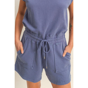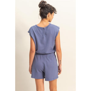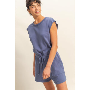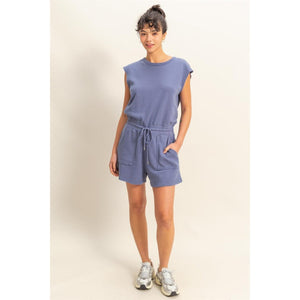 HYFVE Round Neck Cap Sleeve Drawstring Waist Romper