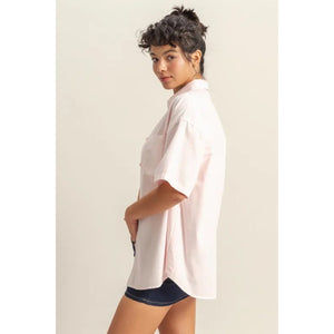 The Short Sleeve Button Down Oversized Shirt is a versatile and relaxed piece that features short sleeves and a button-down front for easy styling. This oversized shirt offers a laid-back and effortless look, perfect for casual outings or lounging in comfort.