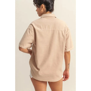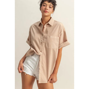 The Short Sleeve Button Down Oversized Shirt is a versatile and relaxed piece that features short sleeves and a button-down front for easy styling. This oversized shirt offers a laid-back and effortless look, perfect for casual outings or lounging in comfort.