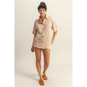 HYFVE Short Sleeve Button Down Oversized Shirt
