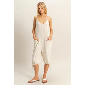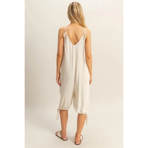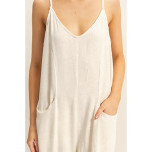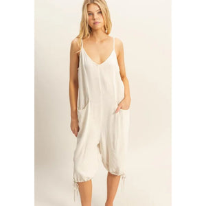 Step out in style with this V-Neck Romper featuring Pocket Details and a Side Tie Hem. The V-neckline adds a touch of femininity, while the side tie hem creates a flattering silhouette. The convenient pockets offer both functionality and style to this chic romper. Perfect for a casual day out or a beach trip, this romper is a versatile piece that can be dressed up or down. Embrace comfort and fashion with this must-have addition to your summer wardrobe.