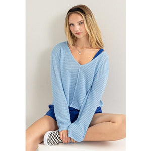 HYFVE V-Neck Stripe Texture Long Sleeve Top