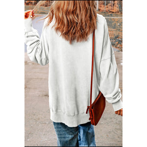 I'M BACK Slit Round Neck Long Sleeve Sweatshirt