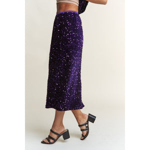 The sequin back slit midi skirt is a stunning piece that brings glamour to any outfit. With its eye-catching sequin detailing, it sparkles beautifully in the light, making it perfect for special occasions or nights out. The midi length provides a sophisticated silhouette, while the back slit adds a touch of allure and ease of movement. Made from high-quality fabric, this skirt offers both comfort and style. Pair it with a simple top and heels for an effortlessly chic look. Elevate your wardrobe with this dazzling and versatile skirt!
