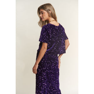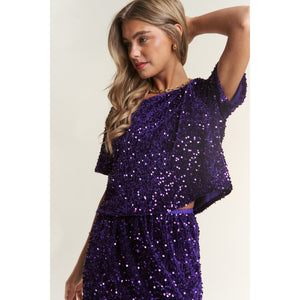 The sequin short sleeve crop T-shirt is a fun and stylish addition to any wardrobe. Featuring dazzling sequins that catch the light, this top adds a festive sparkle to your outfit. The cropped design pairs perfectly with high-waisted jeans or skirts, making it a great choice for a night out or a casual gathering. Made from comfortable fabric, it offers a relaxed fit while still being trendy. Dress it up with accessories or keep it simple for a laid-back look. Shine bright and make a statement with this eye-catching crop T-shirt!