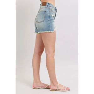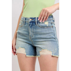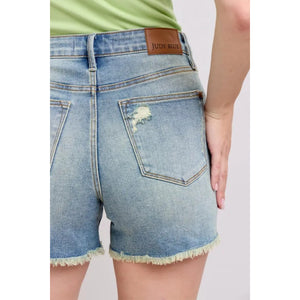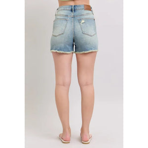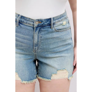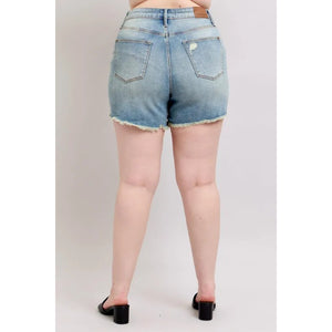 Judy Blue Full Size High Rise Washed Fly Stitch Detail and Destroy Denim Shorts Plus Size