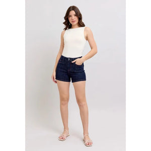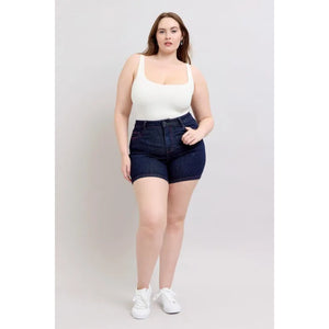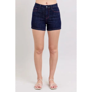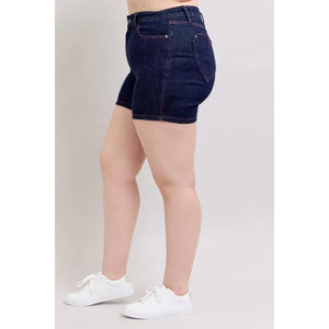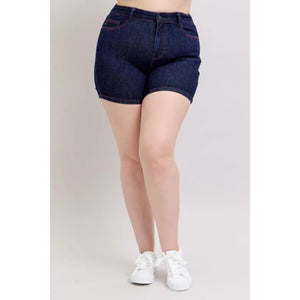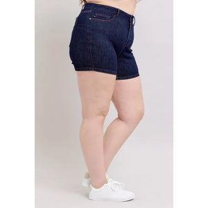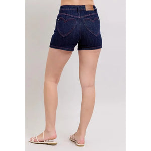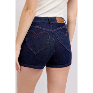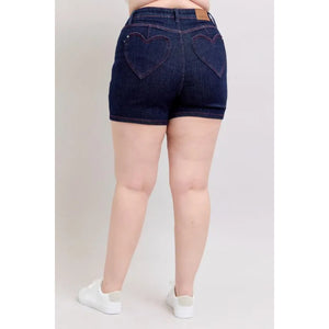 Judy Blue Full Size High Waist Heart Shaped Pkts & Red Contrast Thread Denim Shorts Plus Size