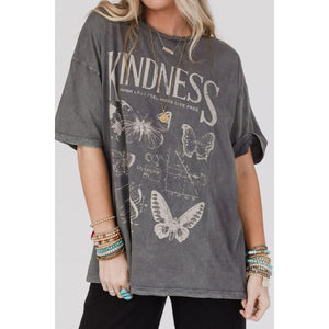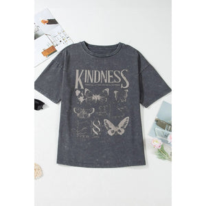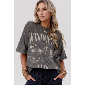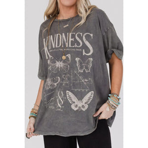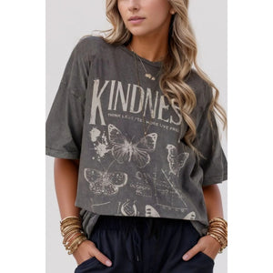 Kindness Butterflies Graphic Mineral Wash Loose Tee