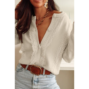 Lace Detail Button Down Long Sleeve Cardigan