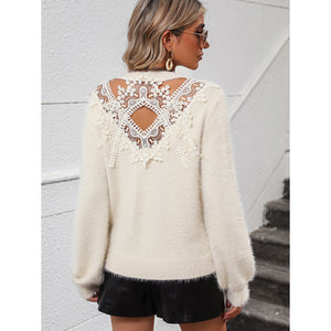 Lace Detail Cutout Long Sleeve Pullover Sweater