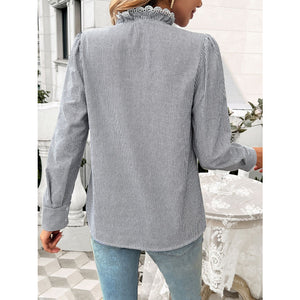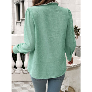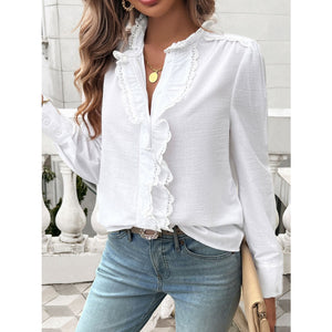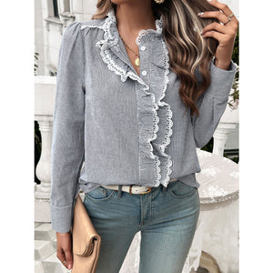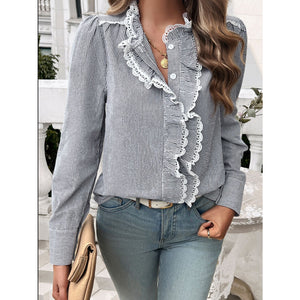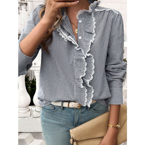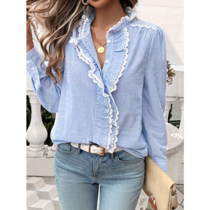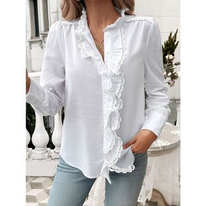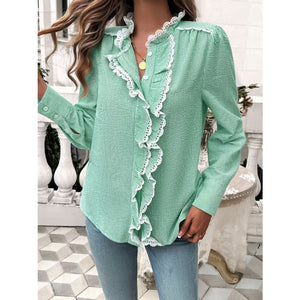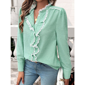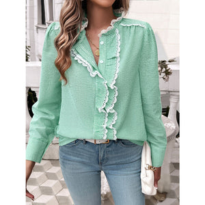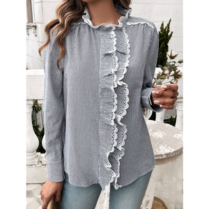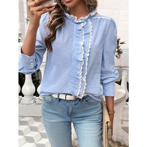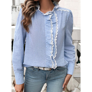 Lace Detail Ruffled Round Neck Long Sleeve Shirt