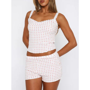 Lace Detail Scoop Neck Printed Cami and Shorts Set
