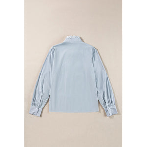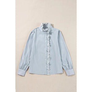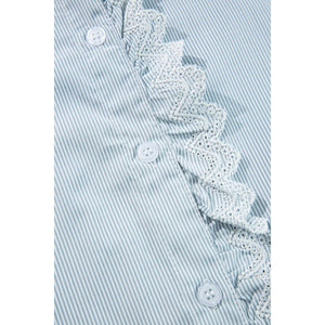 Lace Detail Striped Mock Neck Long Sleeve Shirt