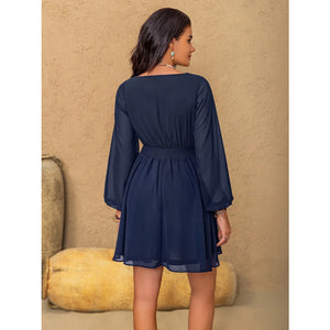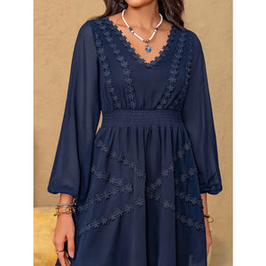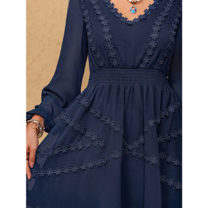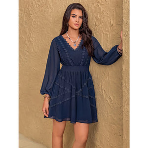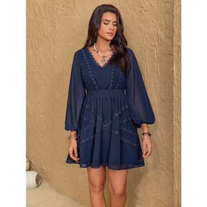 Lace Detail V-Neck Balloon Sleeve Mini Dress