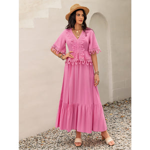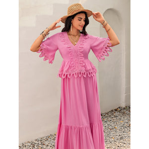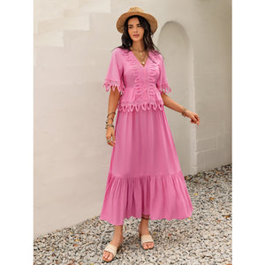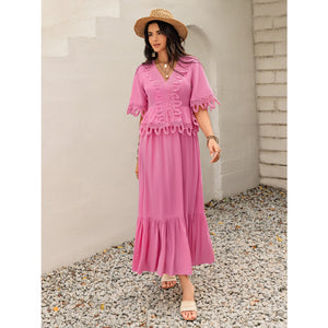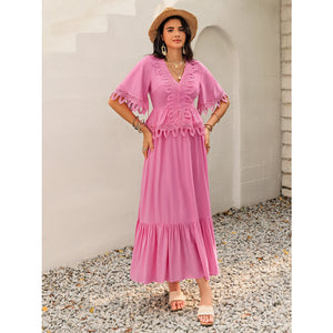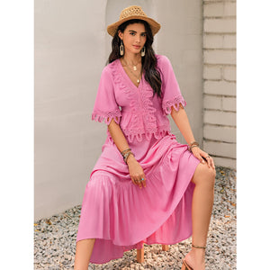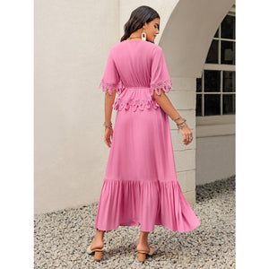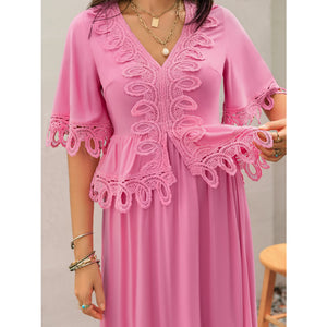 Lace Detail V-Neck Half Sleeve Midi Dress
