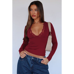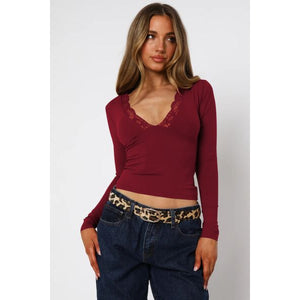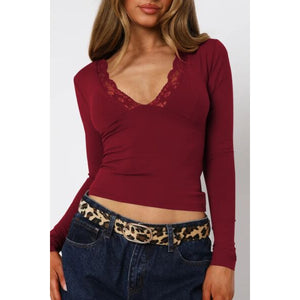 Lace Detail V-Neck Long Sleeve T-Shirt