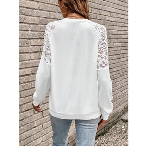 Lace Detail V-Neck Long Sleeve Top
