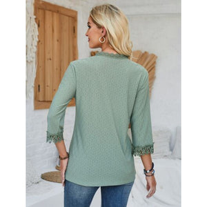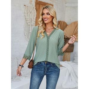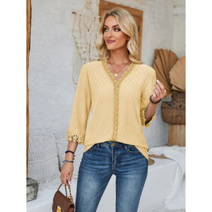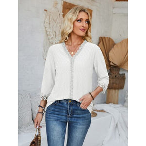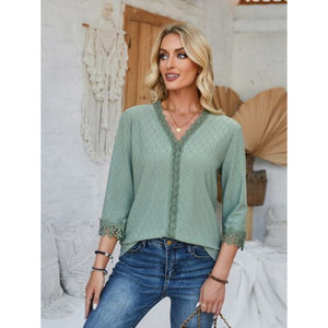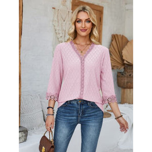 Lace Detail V-Neck Three-Quarter Sleeve Blouse