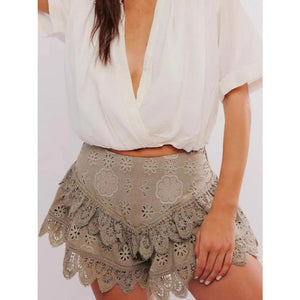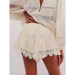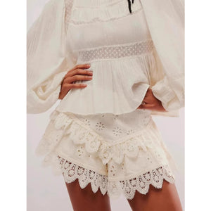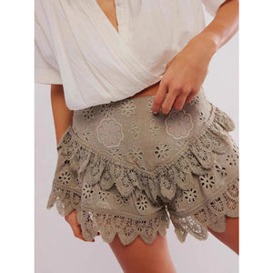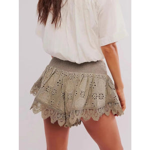 Lace Eyelet Ruffle Hem Shorts