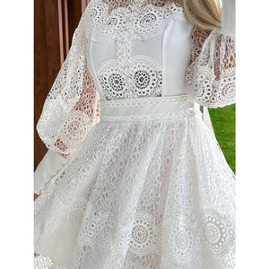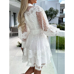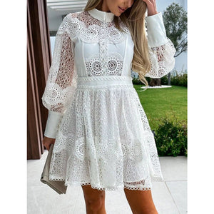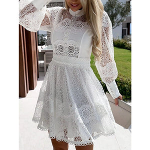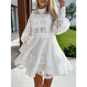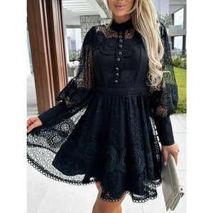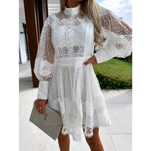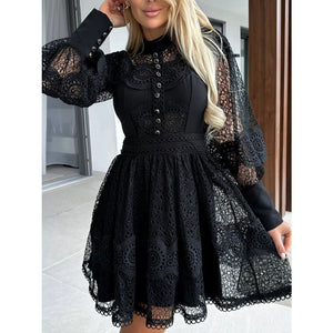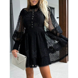 Lace Lantern Sleeve Mini Dress