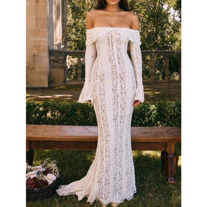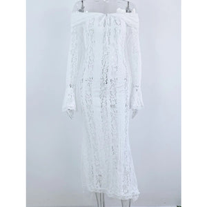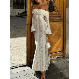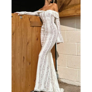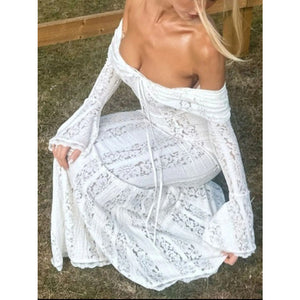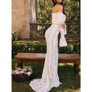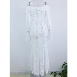 Lace Off-Shoulder Flounce Sleeve Maxi Dress