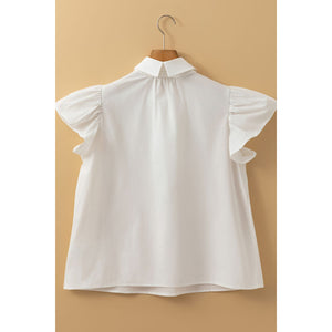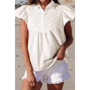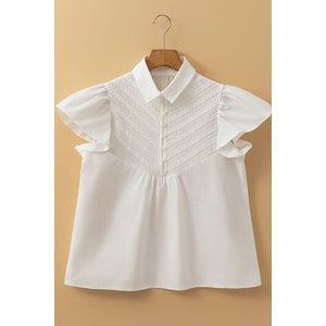 Lace Patchwork Ruffled Cap Sleeve Blouse