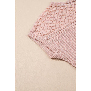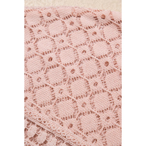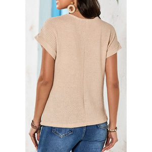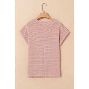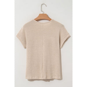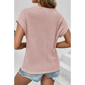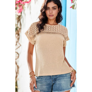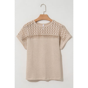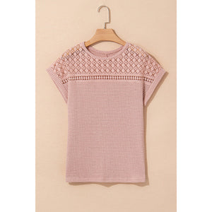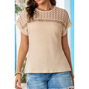 Lace Patchwork Waffle Short Sleeve Knit Top