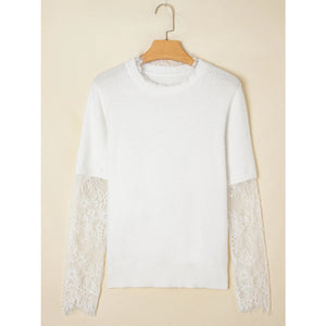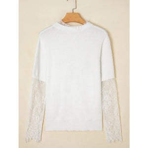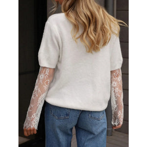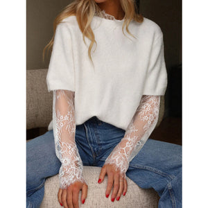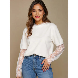 Lace Sleeve Patchwork Faux Two-piece Fuzzy Sweater