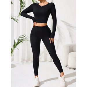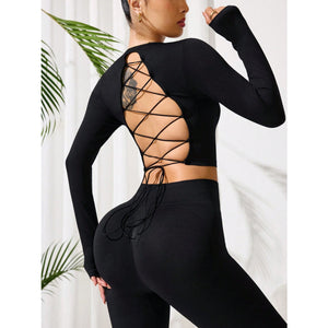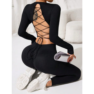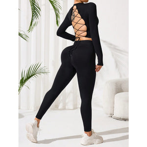 Lace-Up Back Round Neck Top and Leggings Active Set