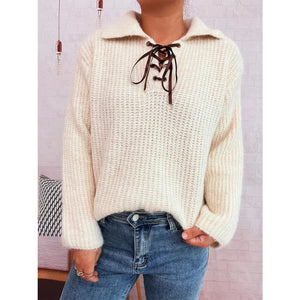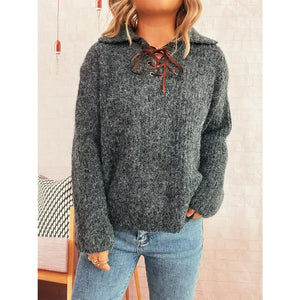 Lace Up Long Sleeve Sweater