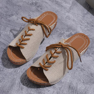Lace-Up Open Toe Wedge Sandals