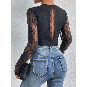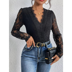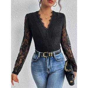 Lace V-Neck Long Sleeve Bodysuit