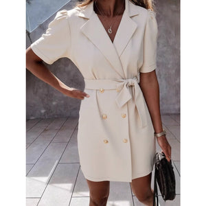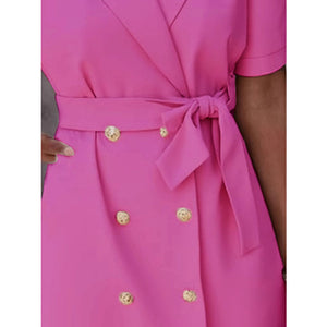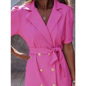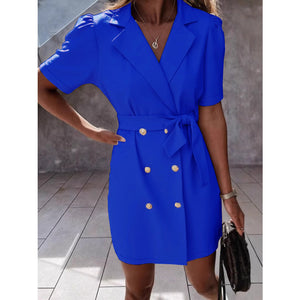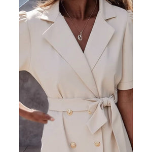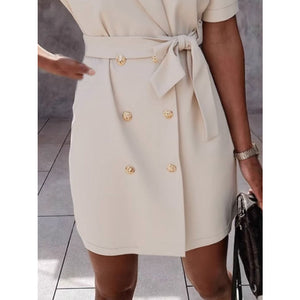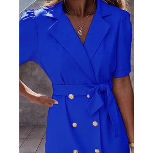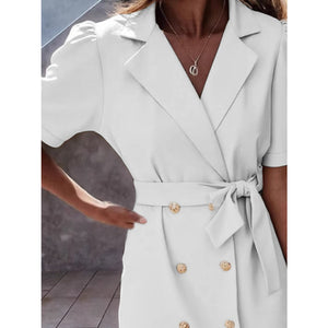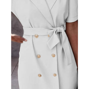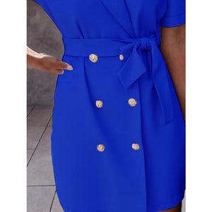 Lapel Collar Short Sleeve Tie Waist Mini Dress